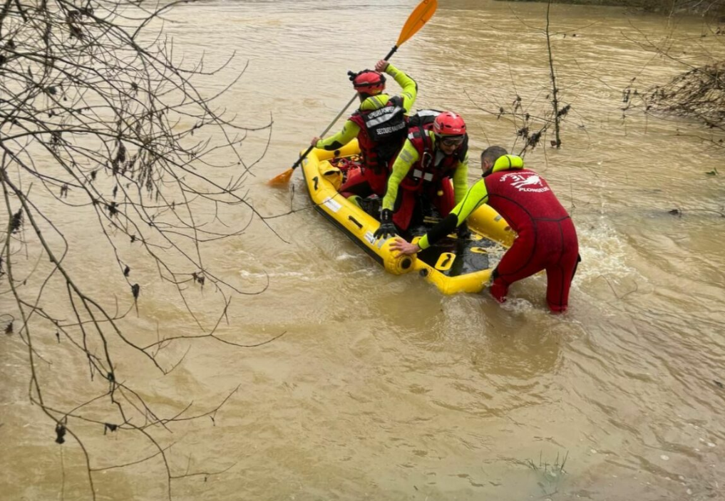 L’approche du tronc d’arbre exige sang-froid et technicité. Les sauveteurs parviennent finalement à atteindre le chien, visiblement stressé mais toujours vivant. Dans un geste maîtrisé, ils le hissent à bord d’un canot pneumatique avant de regagner la rive.
